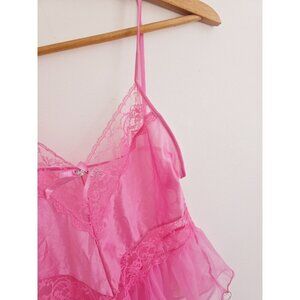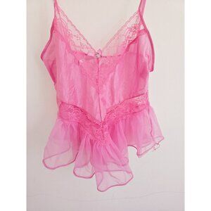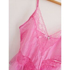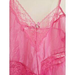 Chic Lingerie CO Vintage Pink Sheer Lace Pin Up Nylon Cami Teddy USA Size Small