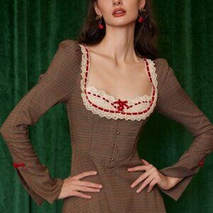 Embrace timeless elegance with this chic brown plaid dress. Perfect for any occasion, its long sleeves add a touch of sophistication.