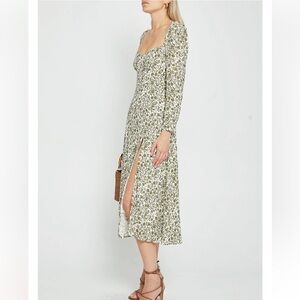 This chic long sleeve floral dress is perfect for any occasion. The elegant design features a stylish slit, adding a touch of sophistication to your wardrobe.