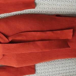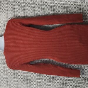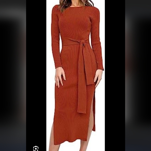 Elevate your style with this chic long sleeve knit dress. The rich rust color adds warmth and elegance to your wardrobe. Perfect for any occasion.