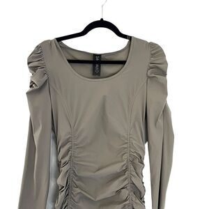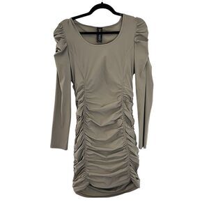 Elevate your style with this chic long sleeve ruched dress. Perfect for any occasion, this taupe dress offers a flattering fit and elegant design.