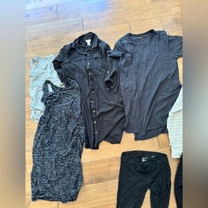 Stylish collection of 8 dresses, 3 black pants, 1 skirt, 1 top. Entire bundle for 100 dollars. Size small. Very comfortable for both work and also going out. Great for lounging around too.