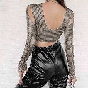 Hollow cut out longsleeve top Crossover printed material GREAT stretch! True to size! Light material great for the spring