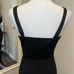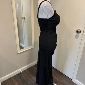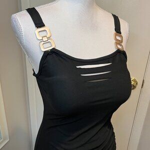 Chic Me Black Ladder cutout Slit Gold Buckle Ruched bodycon Dress, Size Medium