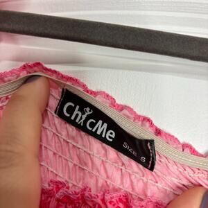 Chic Me Pink Floral Ruched Mini/Short Dress Size Small