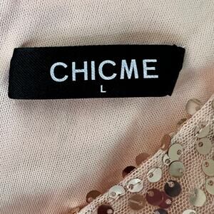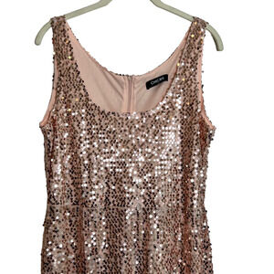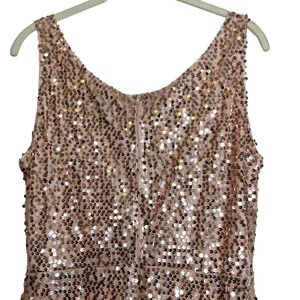 Chic Me Womens Sequined Maxi Dress Large Pink Rose Gold Sexy Slit Sleeveless