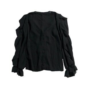 Chic Me Womens Size L Black V-Neck Wavy Edge Butterfly Long Sleeve Blouse