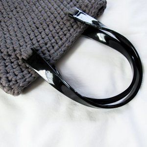 Minimal + Chic fashion mini tote in Gray. Soft fabric knit body with glossy twisted hard plastic handles. Chicest fashion bag! Quality made and perfect small size for your essentials! Preloved, excellent condition.