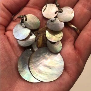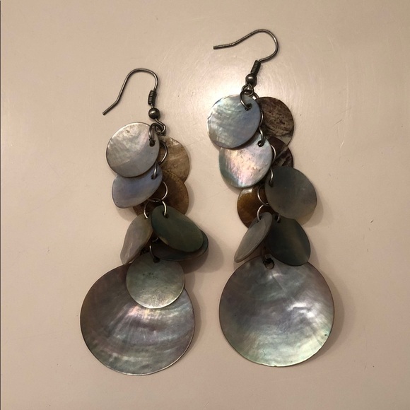 Enhance your style with these chic multi-disc shell earrings. Featuring a captivating blend of silver and brown tones, they add a unique touch to any outfit. Super lightweight, and they tinkle lightly when you move!