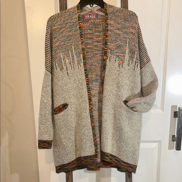 Elevate your wardrobe with this chic vibrant multicolor open-front cardigan. Perfect for adding a stylish touch to any ensemble.