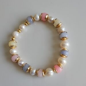 This chic bracelet showcases a beautiful mix of pink, cream, and gray pearls, highlighted with elegant gold accents. A perfect accessory to elevate any ensemble. NEW HANDMADE ✨️