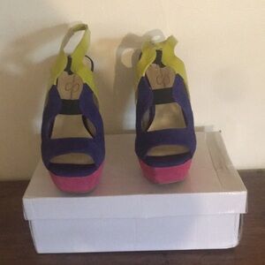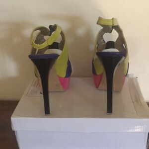 Elevate your look with these chic stiletto heels, featuring a bold mix of purple, green, and pink. Perfect for adding a pop of color to any outfit. Shoes don’t have a box.