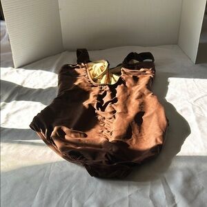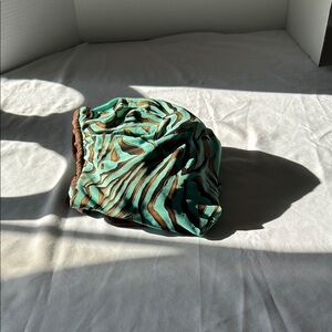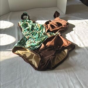 Eye-catching swimsuit with green and brown hues. Perfect for a stylish beach day.