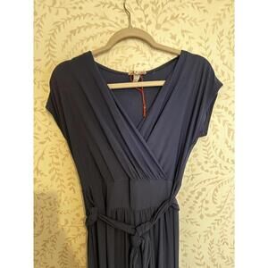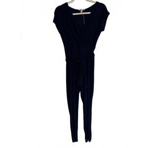 Elevate your wardrobe with this stylish navy blue jumpsuit, perfect for casual outings or special occasions. Crafted from a soft, stretchy fabric, this piece offers both comfort and elegance. The wrap-style v-neck adds a flattering touch, while the tie belt cinches the waist for a tailored look. - Soft and breathable fabric - Flattering wrap v-neck design - Adjustable tie belt for a customizable fit - Versatile for any occasion - Easy to dress up or down with accessories