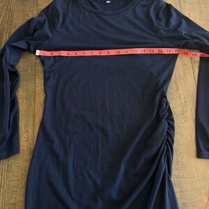 Elegant navy dress with long sleeves. Perfect for any occasion.