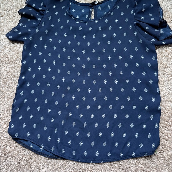 Elevate your wardrobe with this chic navy blouse, perfect for any occasion. The subtle pattern adds a touch of sophistication.