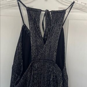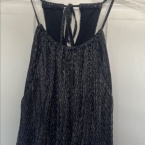 This chic navy blue & silver maxi dress features shimmering silver accents, perfect for evening elegance. The sleeveless design adds a touch of sophistication. I wore it on New Year’s Eve with a silver heel! Lots of compliments!! A really comfortable dress!