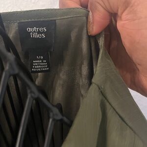This chic olive blouse features elegant ruffle details, perfect for adding a touch of sophistication to your wardrobe.