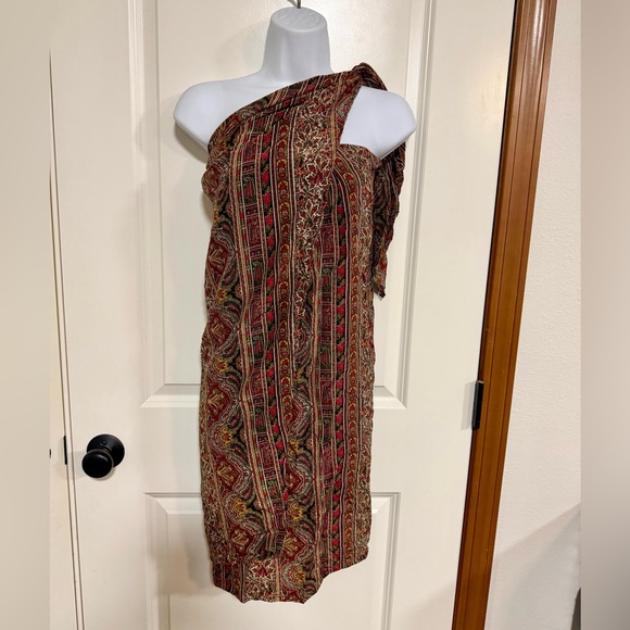 Step out in style with this chic one-shoulder dress, showcasing a stunning pattern in rich brown hues. Perfect for any special occasion.