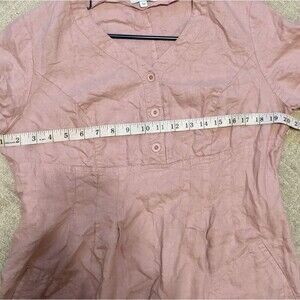 Chic Pa Midi Dress 100% Linen V-Neck Short Sleeve Lagenlook Pockets