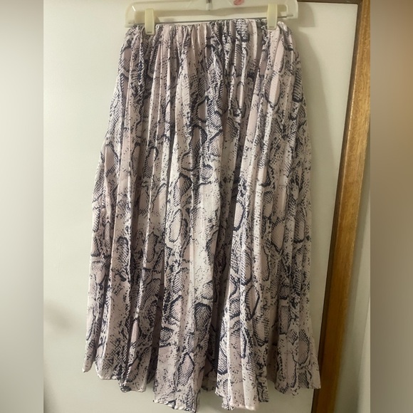 Chic Pastel Pink & Navy (Medium) Lined Snake Print Pleated Flared Skirt