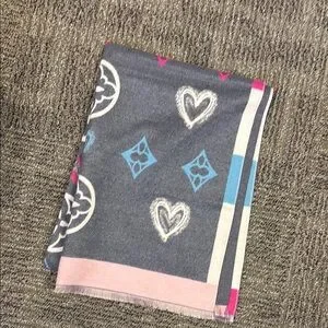 Stylish scarf with heart and geometric patterns. Soft and elegant. Perfect for any outfit.
