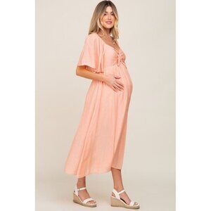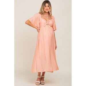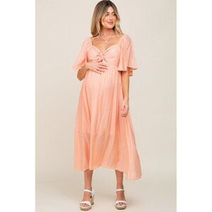 Chic Peach Midi Maternity Dress with Bow Detail - Pink Blush Maternity
