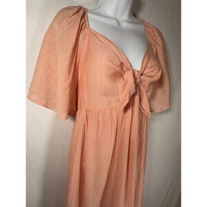 Step out in style with this chic peach midi dress. Featuring a flattering bow detail, it's perfect for any occasion.
