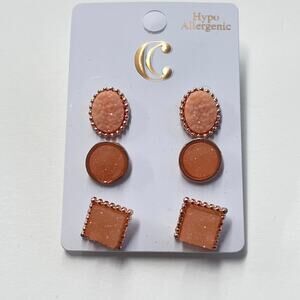 Chic Peach Rose Gold Earrings Set of 3 Hypoallergenic