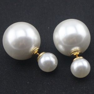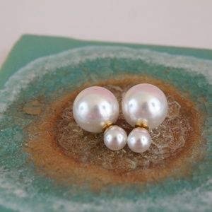 Chic! Pearl DOUBLE BALL Earrings Minimalist Stud