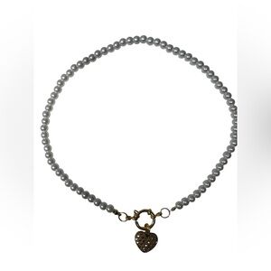 This chic pearl necklace is adorned with a beautiful gold heart charm, adding elegance to any ensemble.