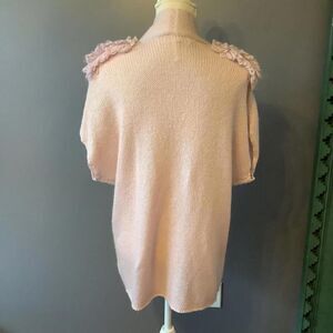 Chic Pink Knit Cardigan with Decorative Textured Shoulders