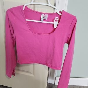 Elevate your style with this chic pink crop top. Featuring long sleeves, it's perfect for a fashionable look.