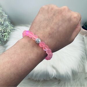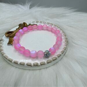 Chic Pink Matte Moonstone Beaded Bracelet w/ Rhinestone