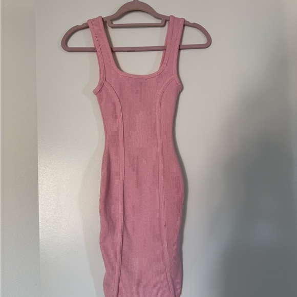 Step out in style with this chic pink ribbed midi dress. Its flattering fit and soft fabric make it a versatile addition to your wardrobe.