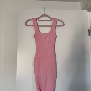Chic Pink Ribbed Midi Dress