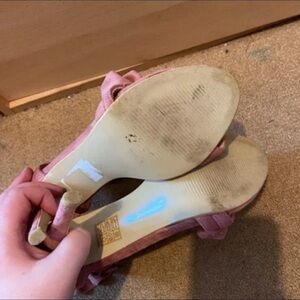 Stylish pink heels with ruffle straps. Perfect for any occasion.