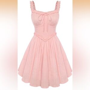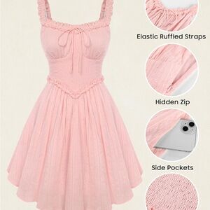 Embrace elegance with this chic pink mini dress, featuring delicate ruffles for a feminine touch. Perfect for any occasion. Brand new with tags