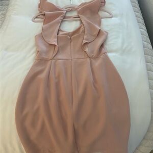 Stylish pink dress featuring elegant ruffle details and a sleeveless design.