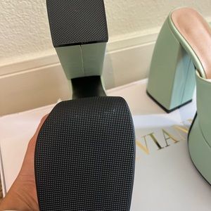 Trendy and chic slide on platforms in gorgeous sage color - very comfortable! Great for tiny girls 🤩