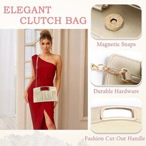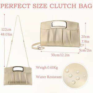 Features: This elegant pleated clutch features a unique metal cut-out handle and a chain strap, so you can carry it as a clutch, crossbody, or shoulder bag. Perfect for formal events, date nights, or chic casual outings. Made with durable vegan leather and metal accents, it’s both pretty and practical.