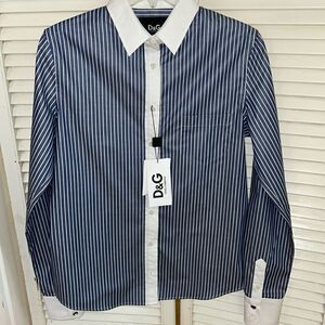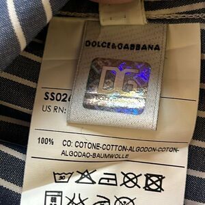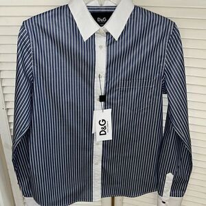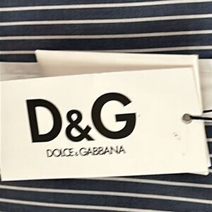 Designer ๐งโ๐จ perfection. Classic Mediterranean Blue and white stripe. Nautical feel. Chic Polished Dolce & Gabbana ๐ซ๐ท โEasyโ French Cuff ๐ฏ Cotton Look ๐ Sharp! Shaping darts ๐ฏ for slim fit. See colors new condition and measurements in no filter picture. Authenticity hologram, tags ๐ท๏ธ extra buttons. Stored sealed. European 44 is size 8 see measurements for more sizing accuracy.