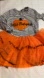 Delight in this charming pumpkin-themed costume featuring a striped top and a vibrant orange tutu. Perfect for Halloween festivities.
