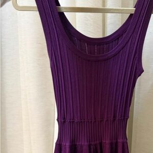 Step out in style with this chic purple ribbed mini dress. Perfect for any occasion, its sleeveless design offers a modern and elegant look.