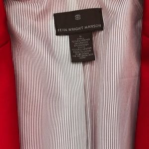 Chic red blazer with blue-&-white pinstripe lining, size S. Dress up or down! Well-made, comfortable, with attractive details front and back. Ships with 100% recycled materials!