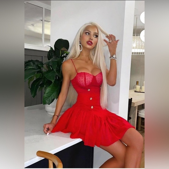 Step out in style with this chic red mini dress, designed to make a statement. Its bold color and flattering fit are perfect for any event.