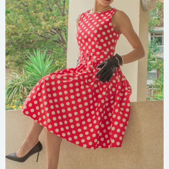 Embrace timeless elegance with this chic red polka dot midi dress. Perfect for any occasion, it offers a flattering silhouette and classic style.