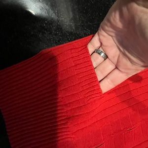 red ribbed sweater, 100% wool with a distinctive zipper pull. Ideal for a bold look.