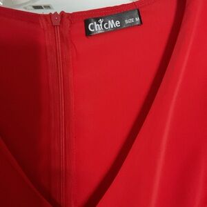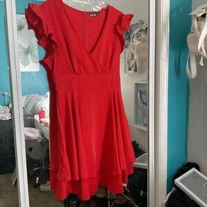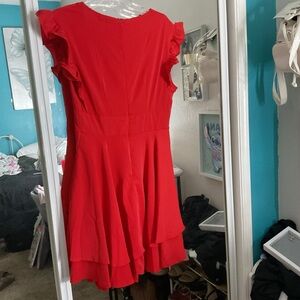 Vibrant red mini dress with playful ruffles. Perfect for a chic look.