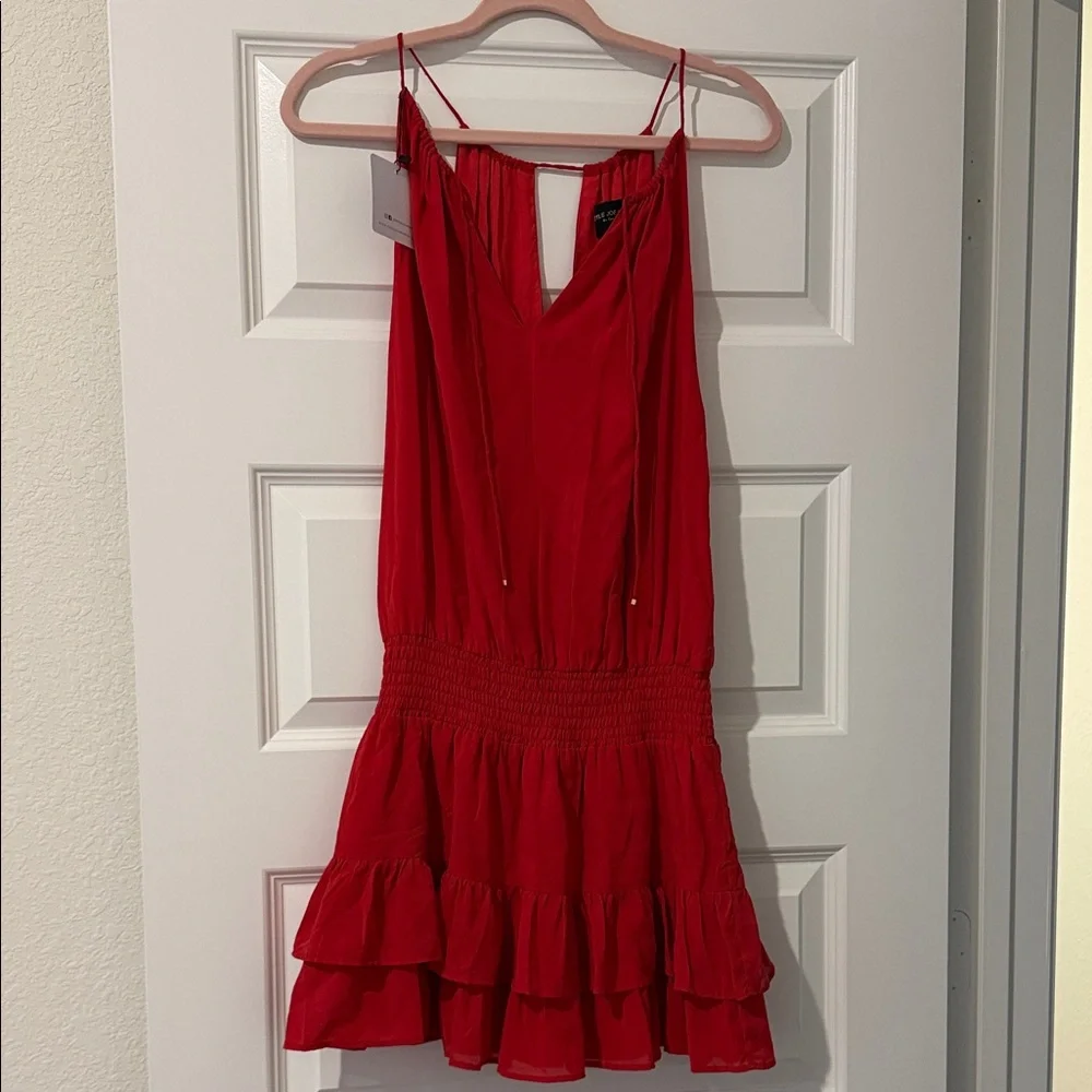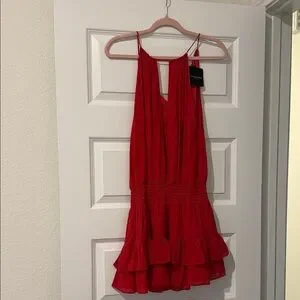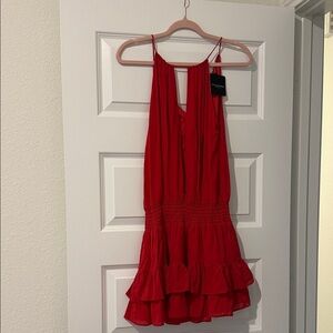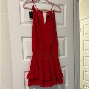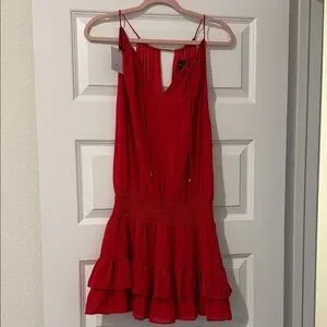 Turn heads with this chic red mini dress, featuring playful ruffles for a stylish look. Perfect for any occasion.